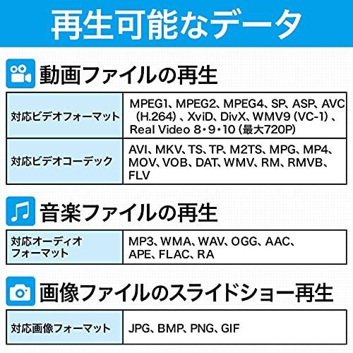 ■対応ビデオコーデック:MPEG1、MPEG2、MPEG4、SP、ASP、AVC(H.264)、XviD、DivX、WMV9(VC-1)、Real Video 8・9・10(最大720P)