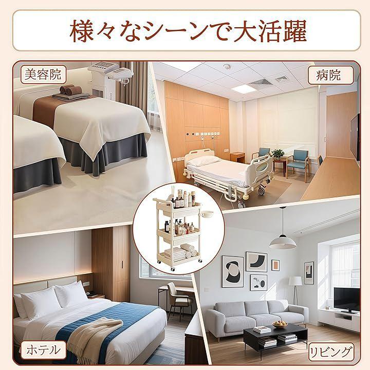 「様々なシーンに適応可能」このワゴンは病院や美容院などの業務用から、寝室・キッチン・バスルームなどの家庭用まで、様々なシーンで活躍します。