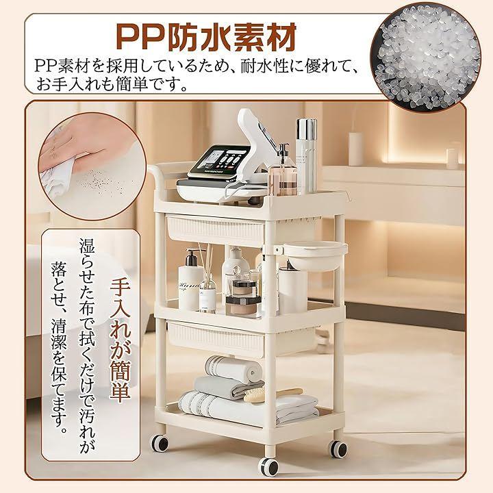 「お手入れと組立が簡単」この収納ワゴンはPP製なので、湿らせた布で拭くだけで汚れが落とせ、清潔を保てます。