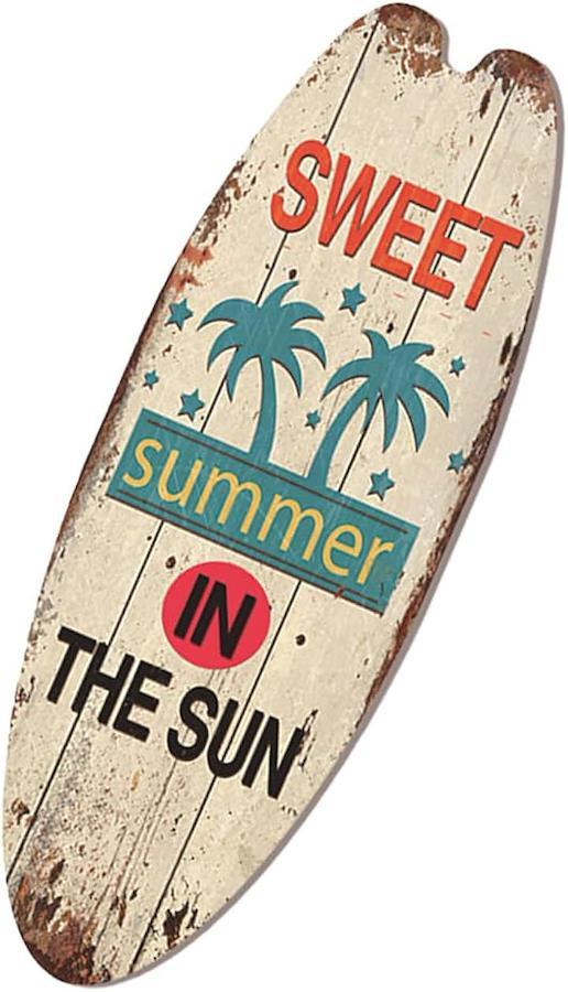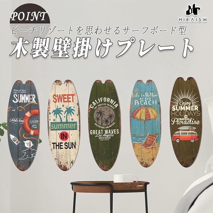 「夏の空気を感じる木製壁掛けプレート」ビーチリゾートを思わせる色使いとサーフボード型のフォルムが、空間に開放感とリラックスを演出する木製壁掛けプレートです。