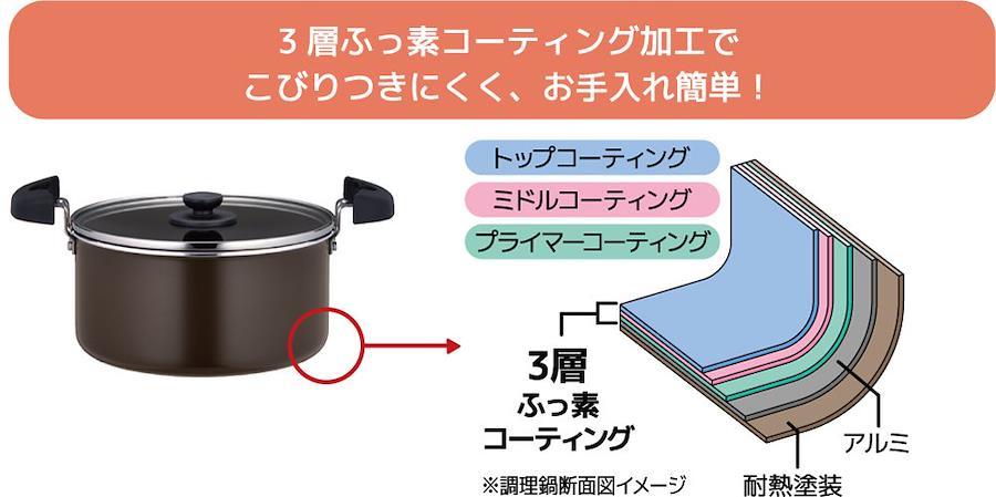 3営業日以内に発送≪新品未開封品≫:サイズ(約):30×24×24cm、本体重量(約):2.6kg/素材・材質:表面加工/ふっ素樹脂塗膜加工(内面)・焼付塗装(外面。底面を除く)、調理鍋本体/アルミニウム合金、はり底/ステンレス鋼(クローム18%。底の厚さ2.9mm。はり底含む)調理鍋フタ/強化ガラス(全面物理強化)/調理鍋容量:4.3L (4~6人用)、ふっ素コーティング加工/対応熱源:ガス火、電磁調理器 (IH 200V 対応)、電気プレート、ハロゲンヒーター、シーズヒーター、ラジエントヒーター/生産国:中国