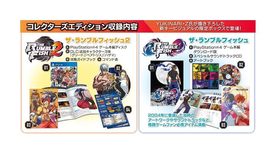 コレクターズエディションには アーケード版「ザ・ランブルフィッシュ」を同梱・シリーズの原点『ザ・ランブルフィッシュ』アーケードオリジナル版のDLCを限定収録(通常販売予定なし)・当時のアートワークや設定資料、サウンドトラックなど、格闘ゲームファン必携のアイテム・アーケード版のキャラクターデザインを手がけたYUKINARI・Z氏描きおろしアウターボックス伝説の格闘ゲームが様々な新機能を追加して、ついに復活!