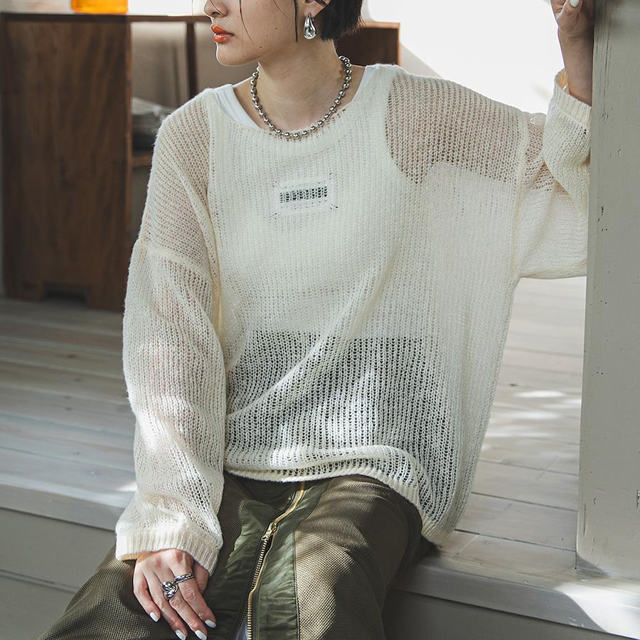 モヘヤ(モヘア)混の糸を使用した、軽く柔らかい着心地でシアー感のあるニット。