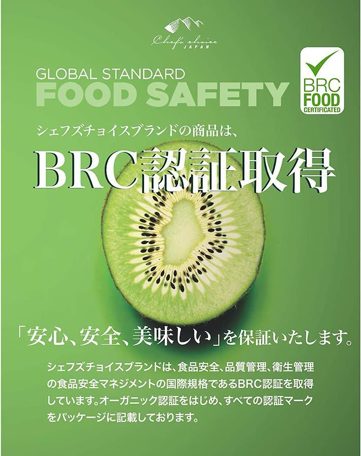 衛生品質管理規格であるBRC認証を取得。世界で最も食の安全に厳しいと言われる英国規格のBRC認証は、安心安全を食卓にお届け致します。