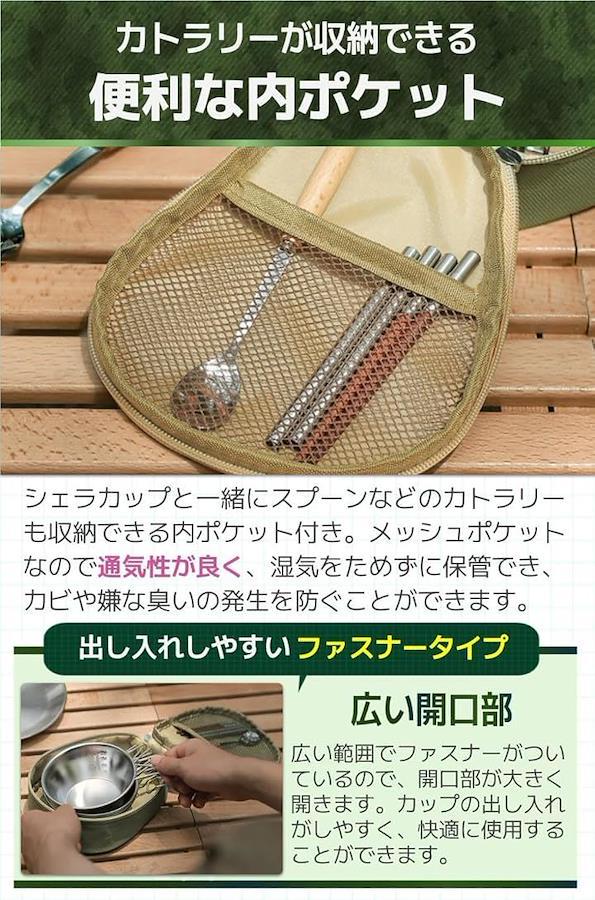 「便利な内ポケット」シェラカップと一緒にスプーンなどのカトラリーも収納できる内ポケット付き。