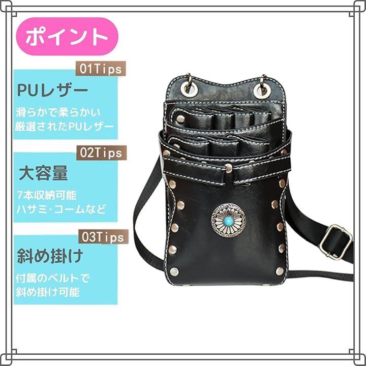「 商品仕様 」「カラー」ブラック・グレー・ピンク・ブラウン・ダークグリーン 「仕様」高さ約21cm、幅約12cm、ショルダーベルト約130cm 「重量」約270g 「材質」PUレザー 「収納力」ハサミ7丁スペース