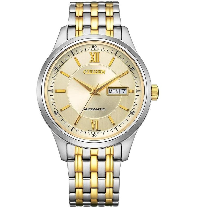 ブランド CITIZEN型番 NY4057-63P型番 NY4057-63Pケースの形状 円形風防素材 サファイアガラス表示タイプ アナログ留め金 三ツ折れプッシュタイプケース素材 ステンレス鋼ケース直径・幅 40 millimetersケース厚 10.7 millimetersバンド素材・タイプ ステンレス鋼バンドサイズ 男性用標準バンド幅 19 millimetersバンドカラー シルバー文字盤カラー ゴールドベゼル素材 ステンレス鋼ベゼル機能 なしカレンダー機能 デイデイトその他 機能 秒針本体重量 320 gムーブメント 自動巻きメーカー保証 メーカー保証