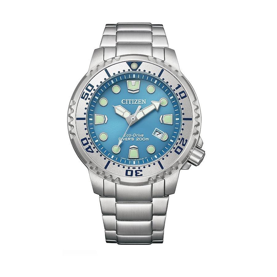ブランド PROMASTER(プロマスター)型番 BN0165-55L型番 BN0165-55Lケースの形状 円形風防素材 クリスタルガラス表示タイプ アナログ留め金 三ツ折れプッシュタイプケース素材 ステンレス鋼ケース直径・幅 44 millimetersケース厚 11.5 millimetersバンド素材・タイプ ステンレス鋼バンドサイズ 男性用標準バンド幅 20 millimetersバンドカラー シルバー文字盤カラー ブルーベゼル素材 ステンレス鋼ベゼル機能 逆回転防止べゼルカレンダー機能 デイトその他 機能 グローインザダークムーブメント 日本製クォーツ耐水圧 200 mメーカー保証 メーカー保証