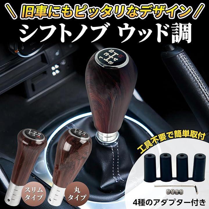 車内を一味違う雰囲気に。 xxウッド製細身シフトノブ(mt 5速用)xxは、おもしろ&クラシカルなデザインで注目度抜群。ブラウンの木目模様が、アメリカンや細身シフトレバーにもフィット。
