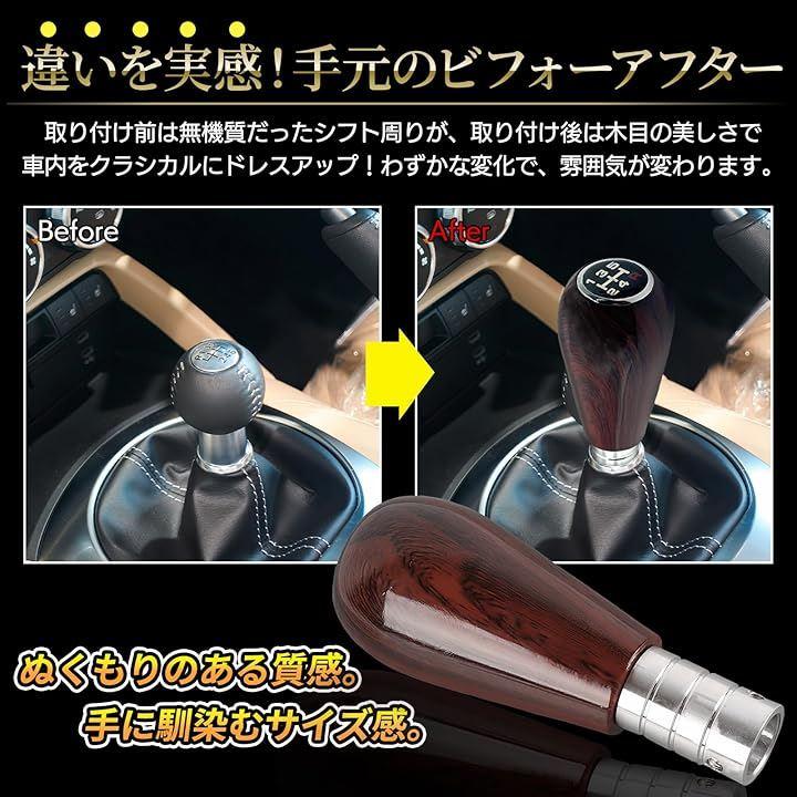 クラシックカーに映えるウッドシフトノブ。 木目が美しいウッド調ブラウンカラーで、クラシック・レトロカー・輸入車の車内をエレガントに演出。