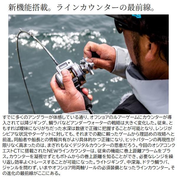 高精度金属ボディ&マイクロモジュールギアの剛健かつ滑らかな駆動系統にデジタルカウンターとフォールレバーを搭載し、高度な戦略とその再現性を実現するオシアコンクエストCT。NEWモデルはテンションを掛けても巻きが重くならない新型フォールレバーとインフィニティドライブを搭載し、巻きの軽さと感度がいっそう向上。さらに視野角が拡大したNEWラインカウンターには巻き上げ距離アラームを搭載し、より緻密な戦略をサポートする。■200PG・・・ギア比4.8:1、最大巻上長57cmのローギア仕様は巻きブレを低減し、鯛ラバの定速巻きに特化。バーチカルからドテラ流しまで広範囲の鯛ラバゲームに対応する。※オシアコンクエストCTは全機種PEライン専用です。 重量(g):300 巻取長さ/ハンドル1回転(cm):57 ギア比:4.8 巻糸量PE(号-m):1.0-400、1.5-260、2.0-200 ベアリング:11/2 最大ドラグ力(kg):8 ハンドル長さ(mm):51 スプール径/幅(mm):38/18.8 夢屋ハンドルノブタイプ:A 夢屋ハンドルタイプ:BH-1 ※実物と色が違って見える場合があります。あらかじめご了承下さい。