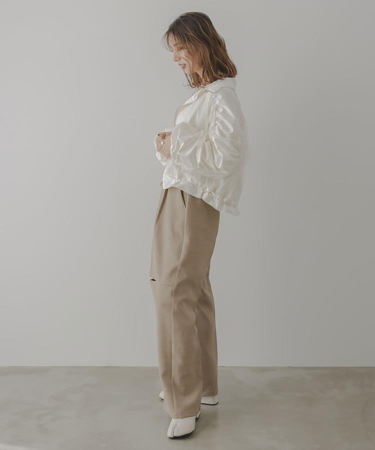 パールのようなほのかな艶感が魅力的なタフタ素材はカジュアルな中に女性らしさ漂う雰囲気に仕上がります。