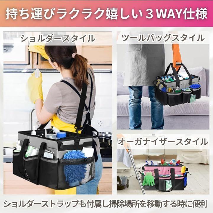 「外ポケット多数」洗剤やスプレーやブラシなども一目でわかる配置可能。