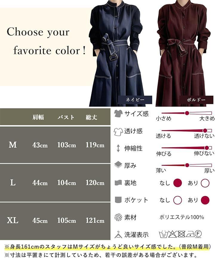程よくフィットするデザインが、女性らしいシルエットを引き立てながら、体型カバーにも役立ちます。