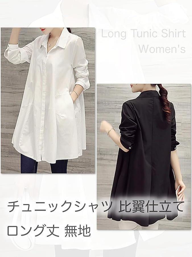 チュニックとしてもシャツワンピ風にも使えるロング丈。