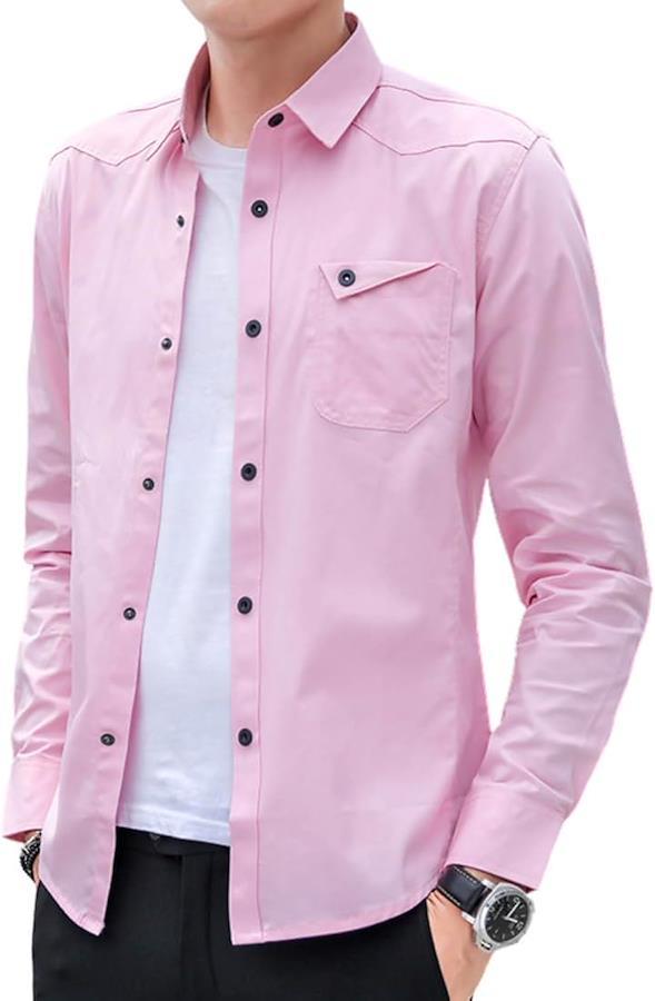 「商品の特徴」コットン100%、長袖、カジュアル、無地、スナップボタン、春秋冬、胸ポケット、前開き。