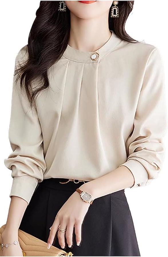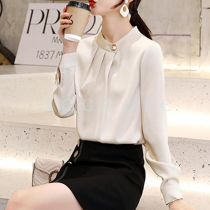 胸元への流れがきれいなタックネックブラウス。
