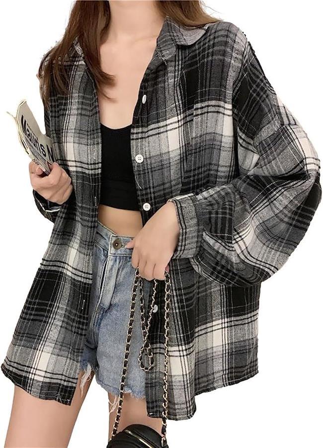 大きめのチェック柄が存在感を引き立て、シンプルなインナーに羽織るだけでスタイルが完成。