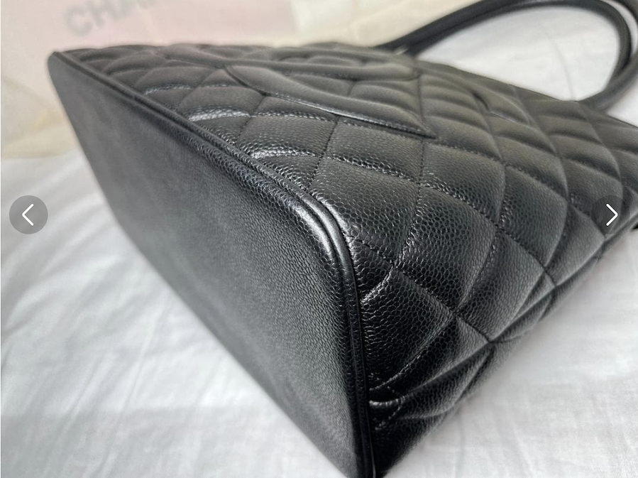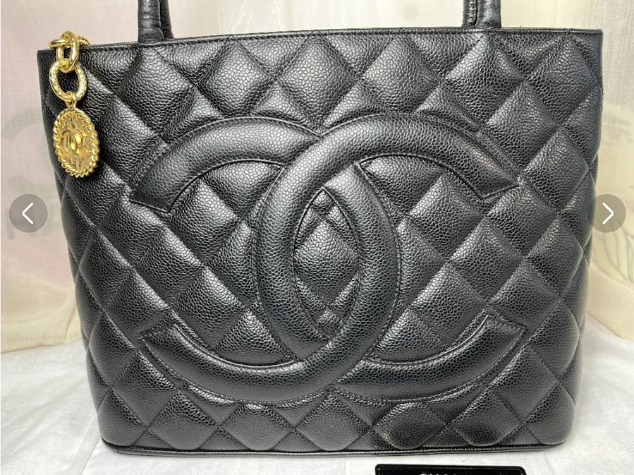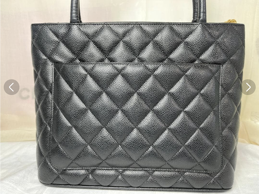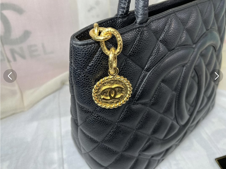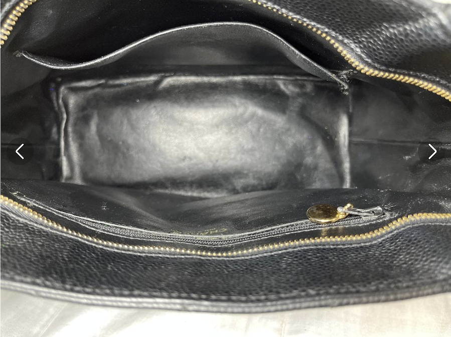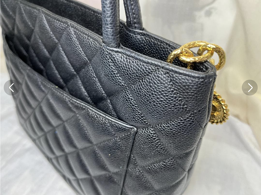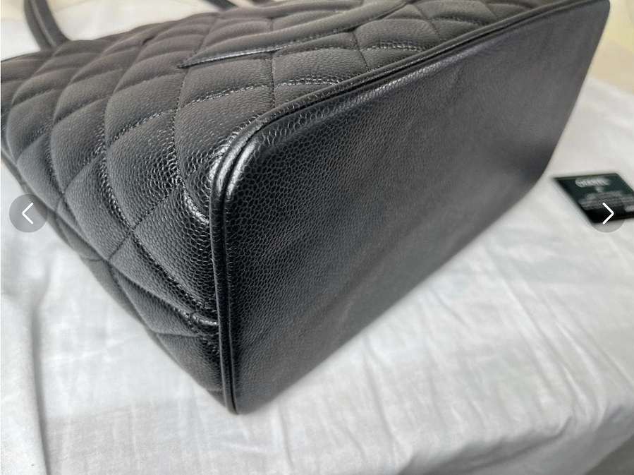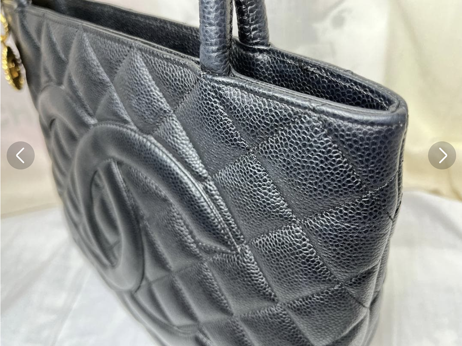 上質なキャビアスキンの力強い質感と、フロントの大きなCCココマークが存在感を放つ、完成度の高いヴィンテージバッグです。