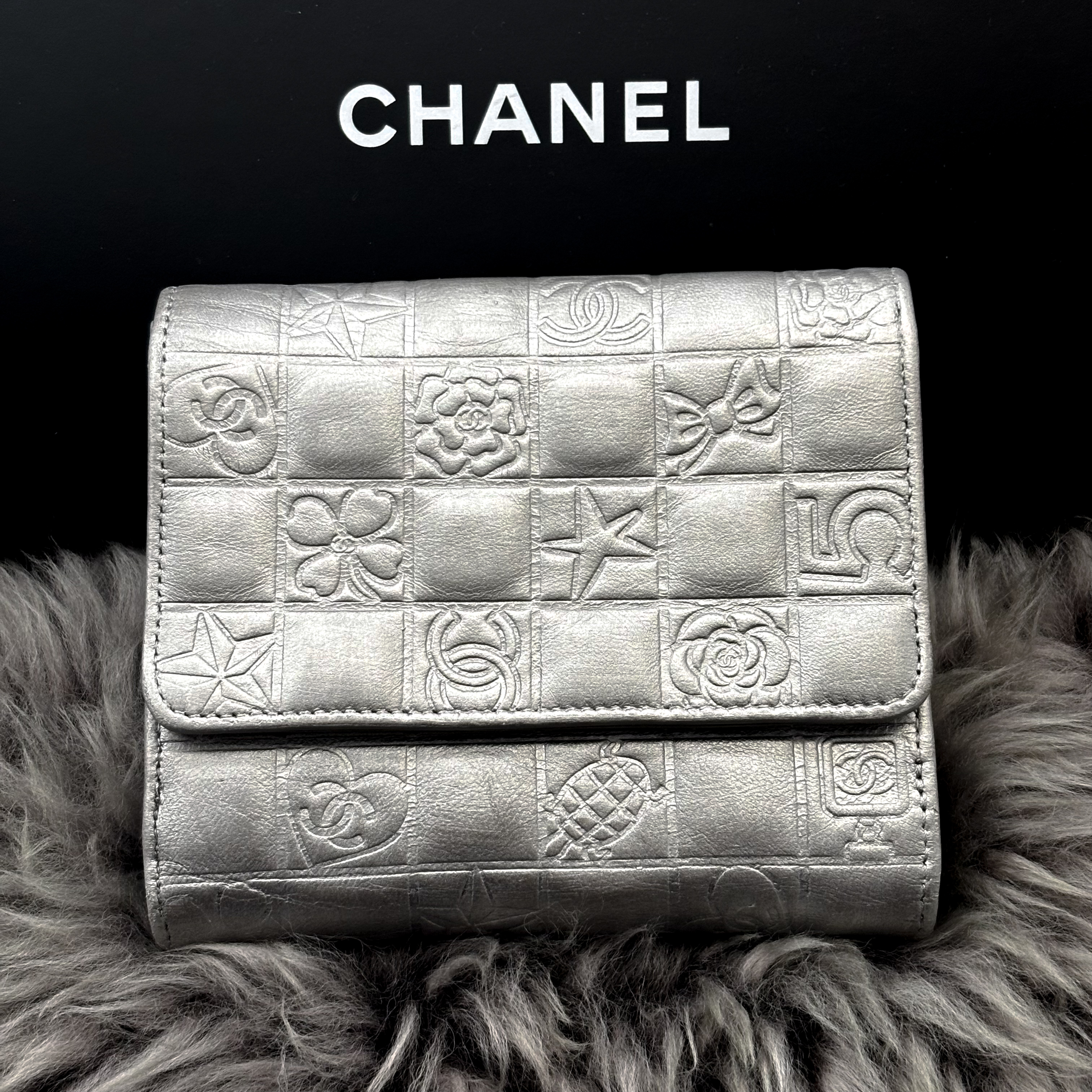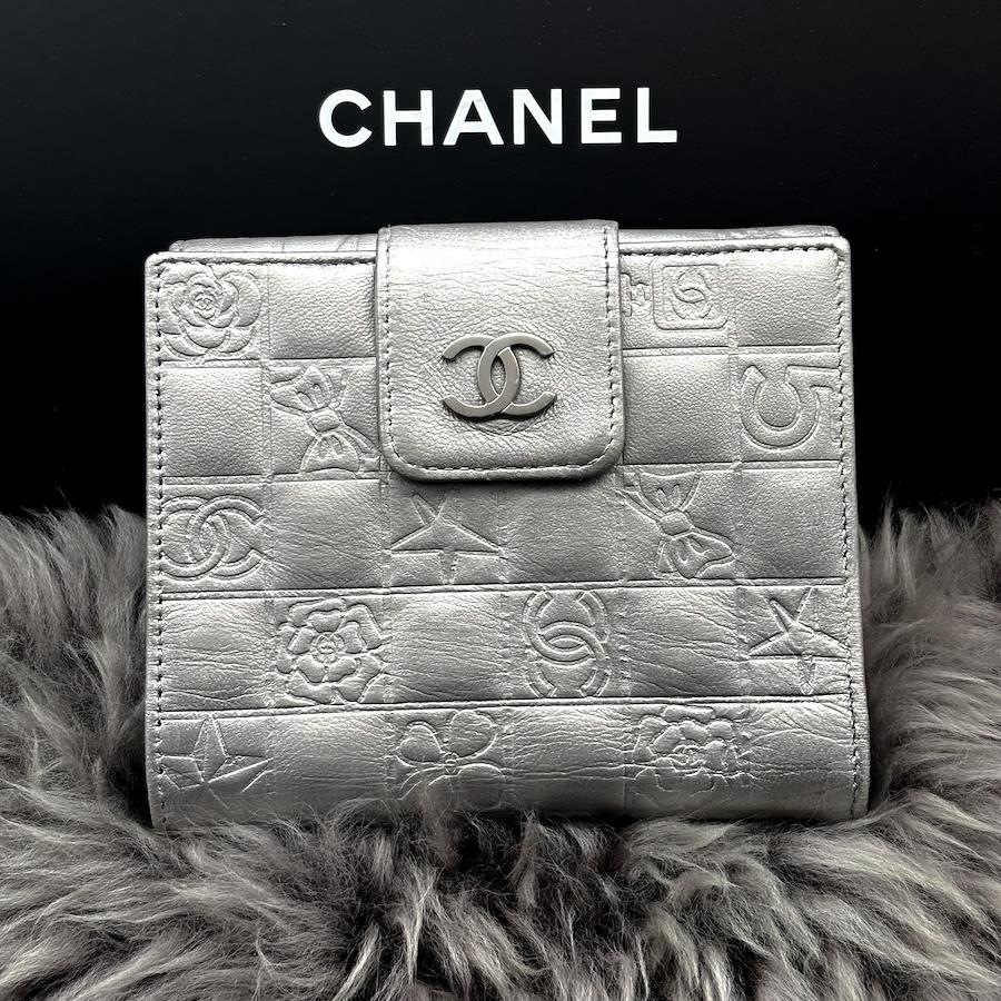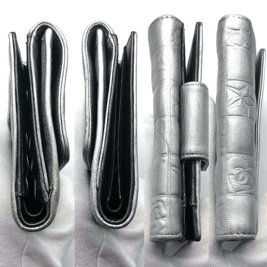 ★商品詳細★●商品名 シャネル アイコンライン Wホック 二つ折 財布●色 シルバー●付属品 ギャランティカード●素材 本革、シルバー金具●サイズ 約12.0×11.0×3.0㎝●シリアルナンバー 10738771●シリアルシール付●販売店証明シール付●仕様 ボタン開閉式、二つ折、カードポケット×6、小銭入れ×1、札入れ×1、ポケット×2
