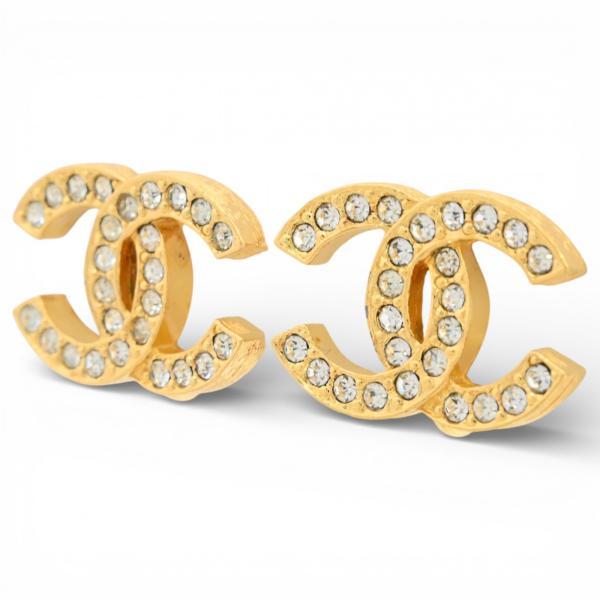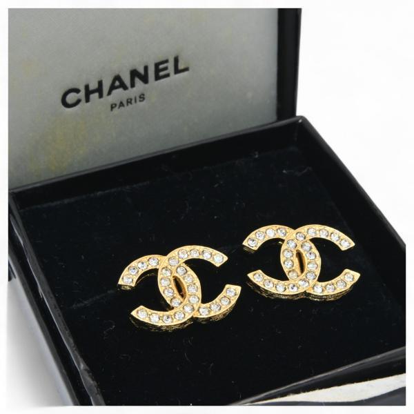 【管理番号】ch3030ss【サイズ】 約:縦1.5cm×横2cm×幅0.3cm【型番】不明【シリアルNo.】2084【素材】メタル×ラインストーン【色】ゴールド【生産国】フランス【付属品】箱