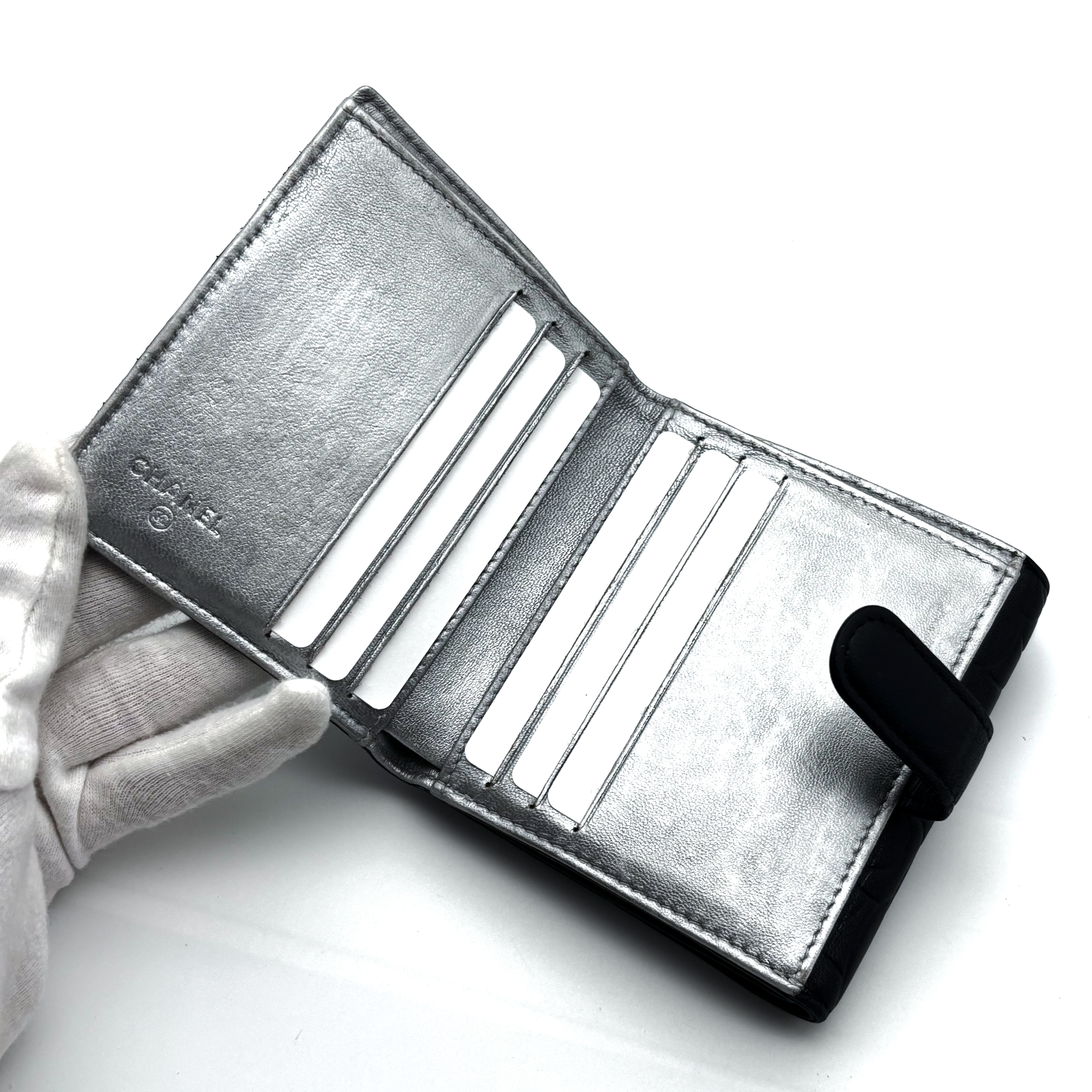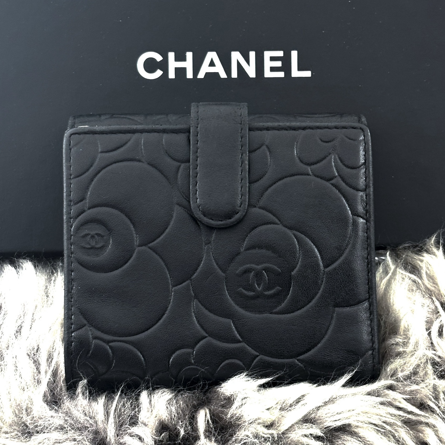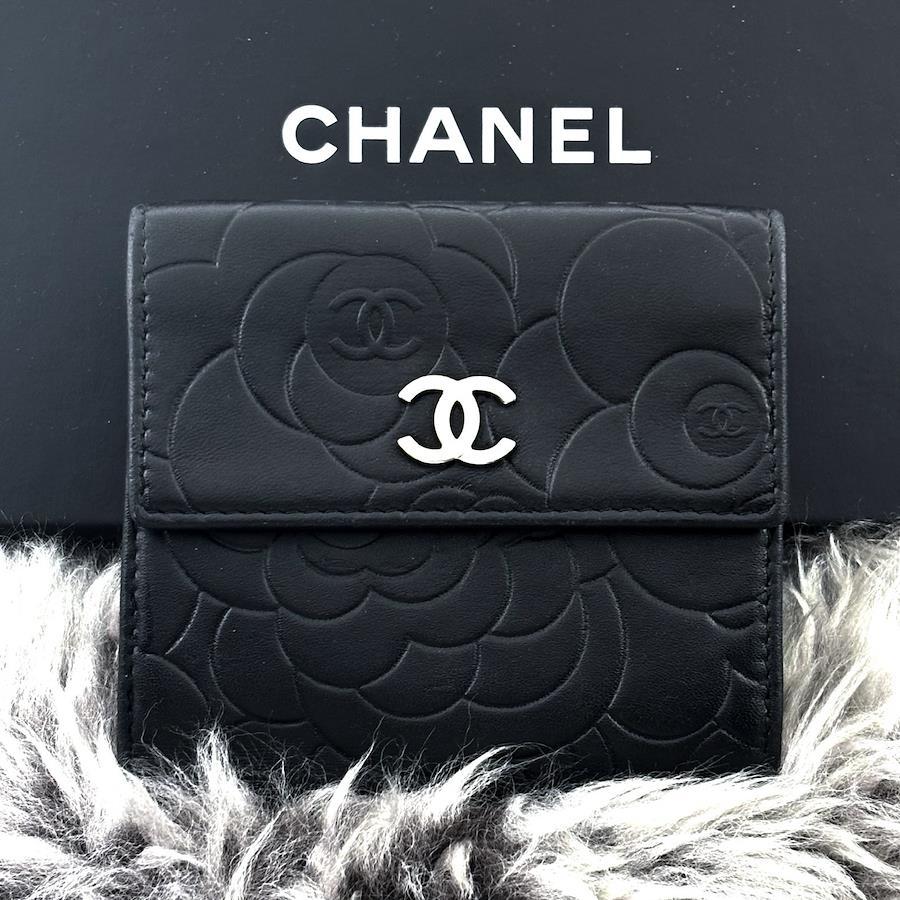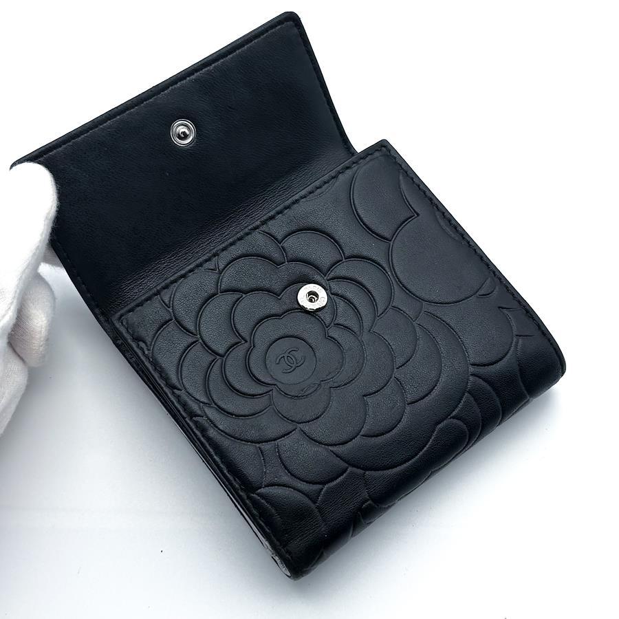 ★商品詳細★●商品名 シャネル カメリア 型押し Wホック 二つ折 財布●色 ブラック、黒、シルバー●付属品 箱、ギャランティカード、冊子●素材 本革、シルバー金具●サイズ 約10.8×10.5×3.2㎝●シリアルナンバー 13965430●シリアルシール付●仕様 ボタン開閉式、カードポケット×6、小銭入れ×1、札入れ×1、ポケット×2