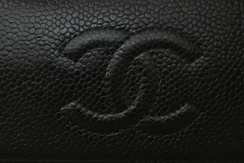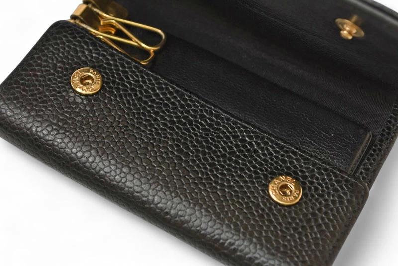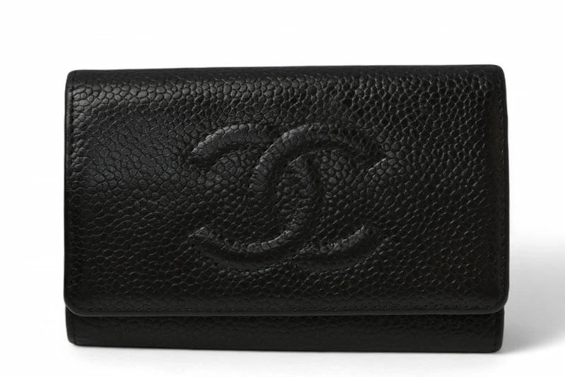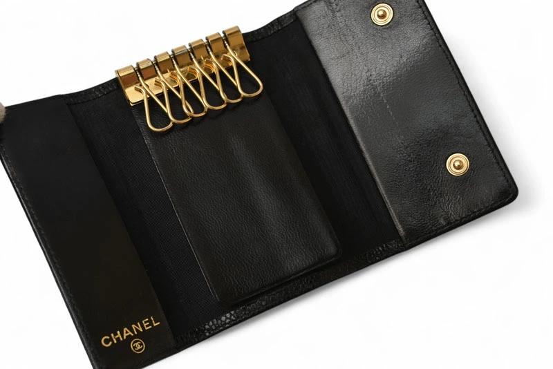 Pre-owned CHANEL 6-ring key case with CC mark, caviar leather, black with gold hardware.