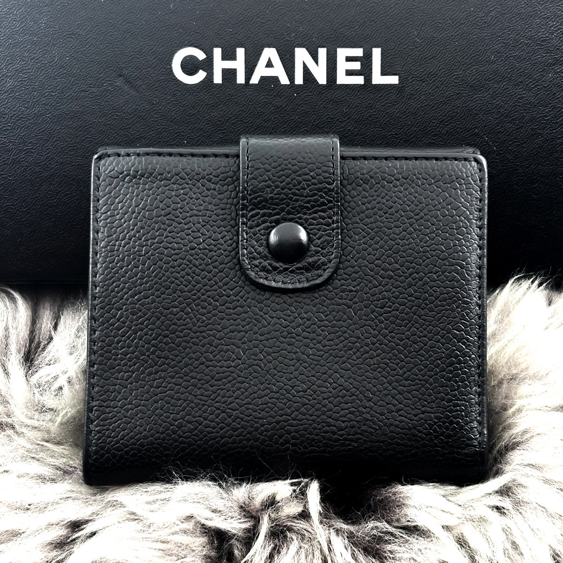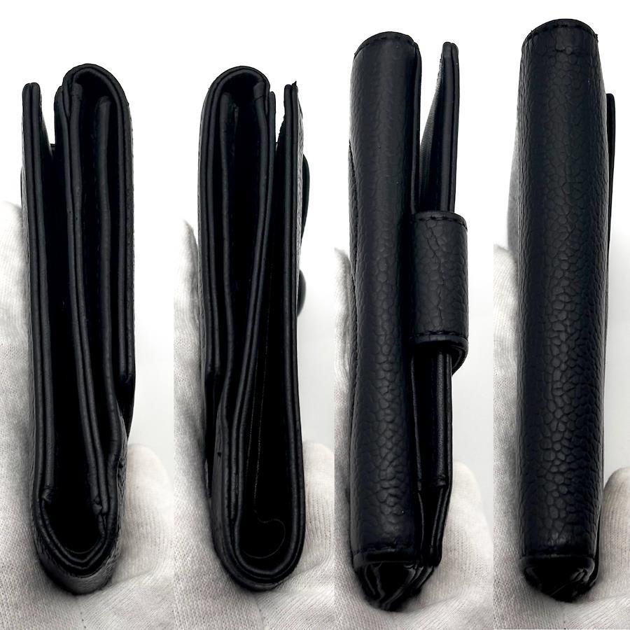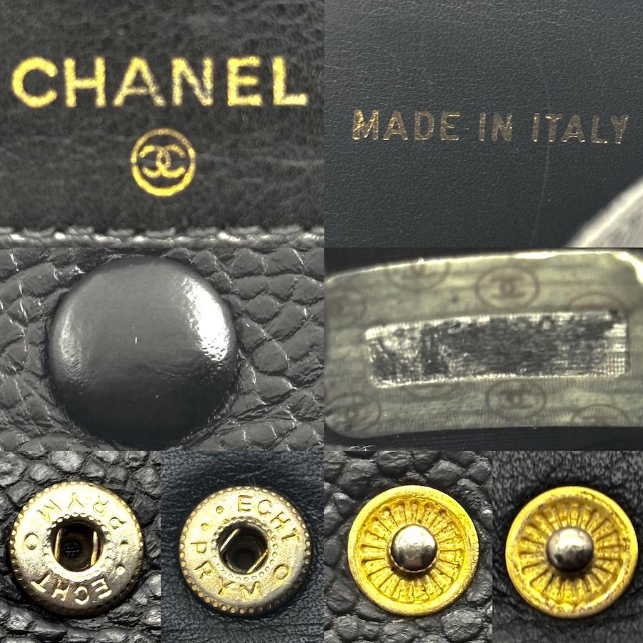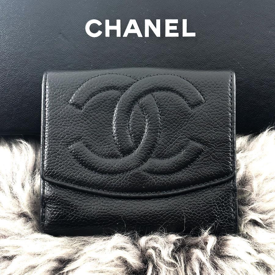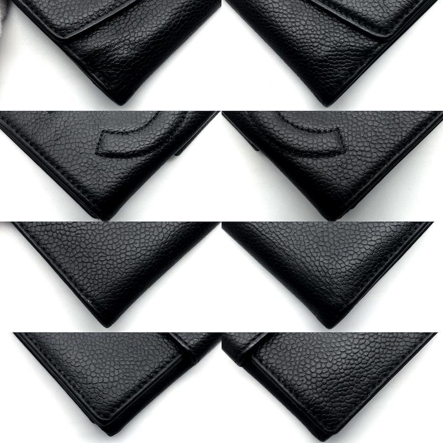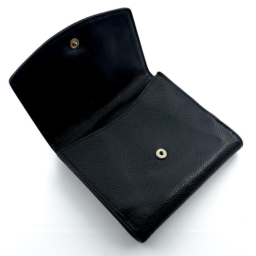 ★商品詳細★●商品名 シャネル キャビアスキン ココステッチ デカココ Wホック 二つ折 財布●色 ブラック、黒●付属品 なし●素材 本革、ゴールド金具●サイズ 約11.5×10.5×2.2㎝●シリアルナンバー 読み取り不可●シリアルシール付●仕様 ボタン開閉式、二つ折、カードポケット×6、小銭入れ×1、札入れ×1、ポケット×2