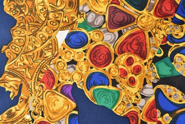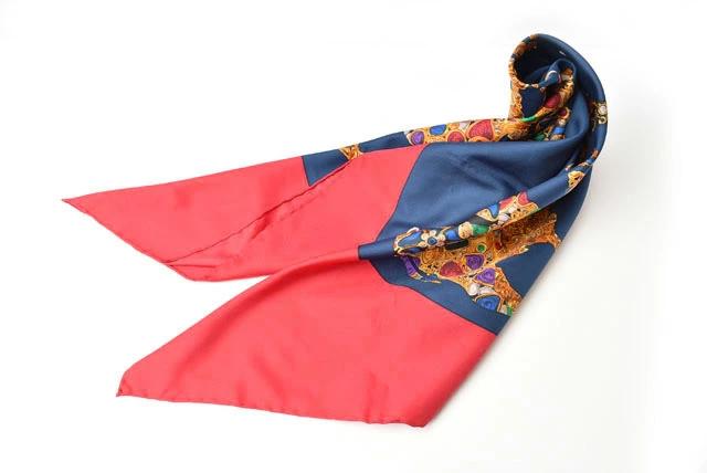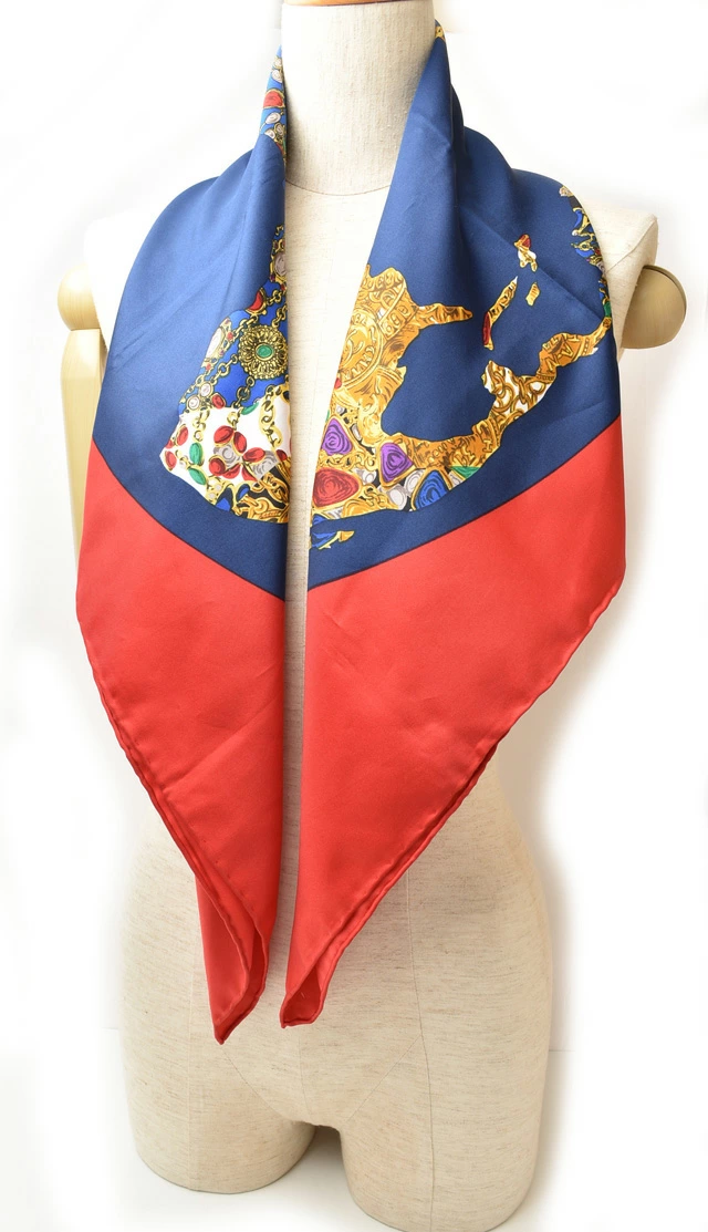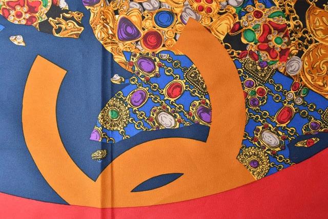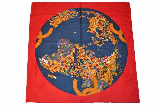 CHANEL スカーフ 88 シルクツイル CCマーク/世界地図/宝石モチーフ レッドマルチ