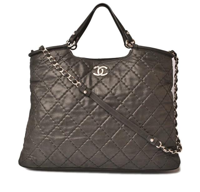 世界中のセレブに大人気のシャネル、トートバッグです。ヴィンテージ加工されたメタリックカーフです。国内では希少なラインで入手困難。かっちりした印象になります。A4対応で、雑誌もすっぽり入る大きさです。容量が多くなっても、ショルダーチェーンもあり、スタイルにあわせて2WAYでの使用が可能です。大き目のステッチを施した柔らかなレザー素材。マチも大きく収納力があります。