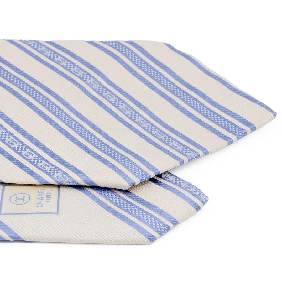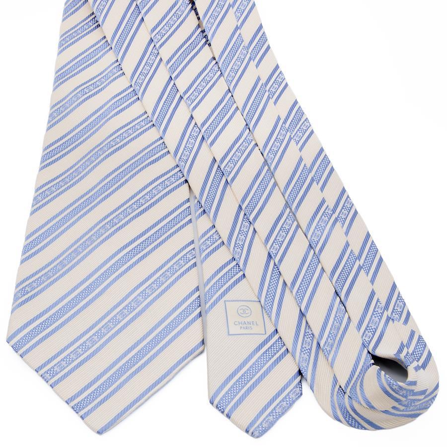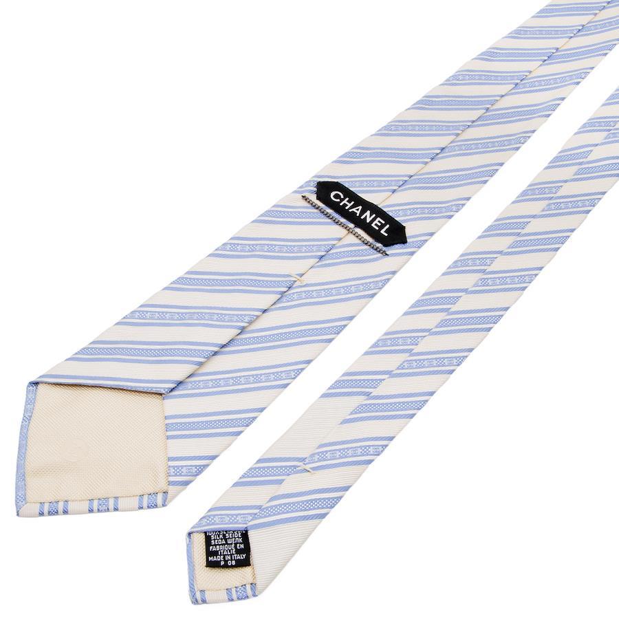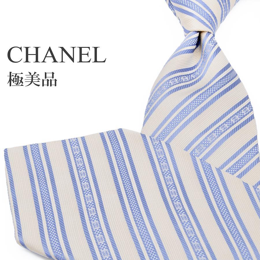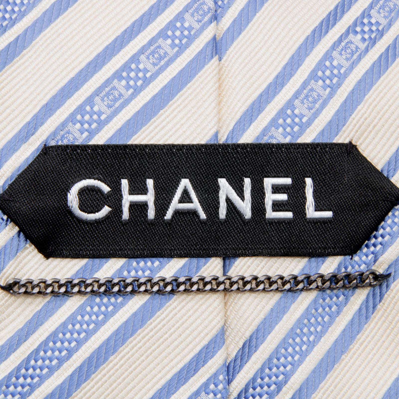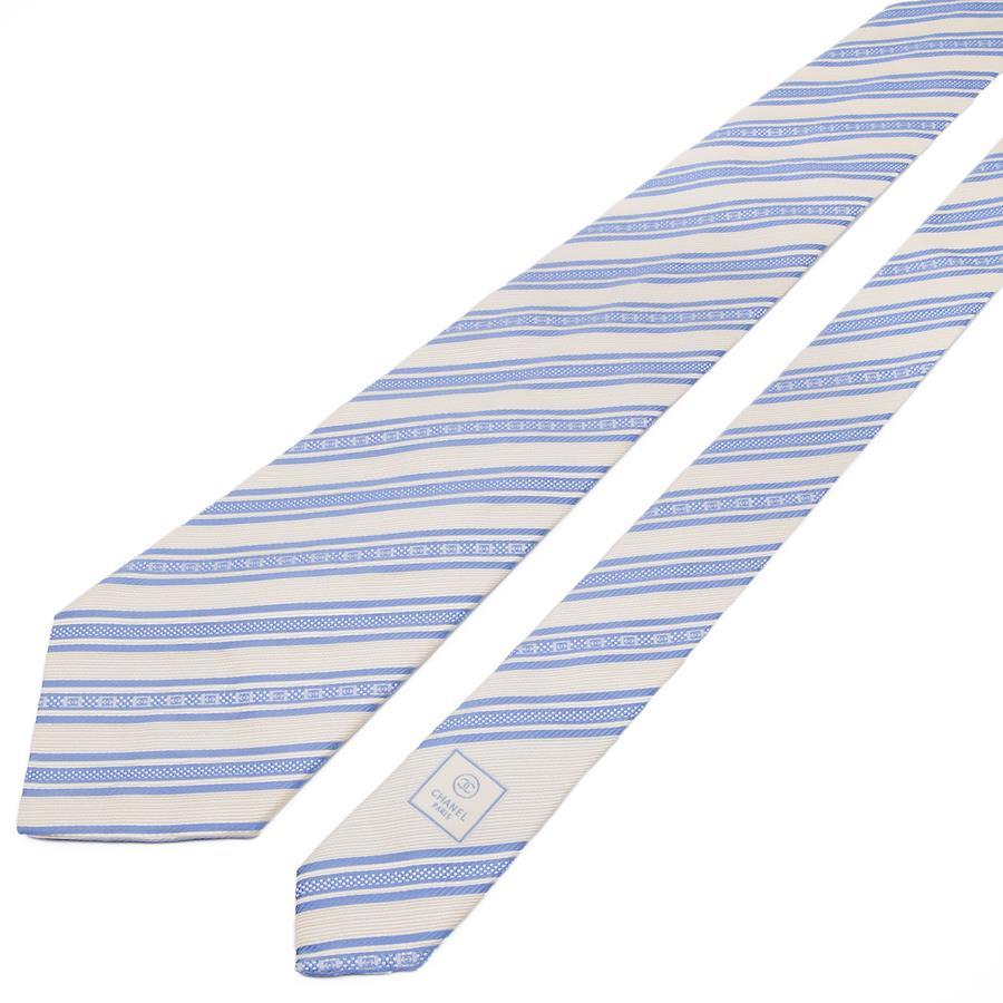 こちらはストライプの中に、ココマークがさりげなく織り込まれている、シャネルのネクタイでございます。