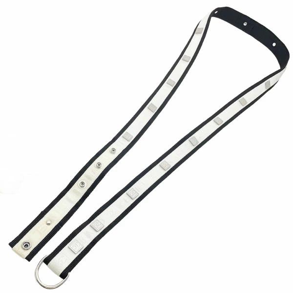 ベルト:ヨレ・シワ・使用跡等があり、画像では分かり辛いですが、特に、アイボリー地は所々に黄ばみ変色汚れが生じています。タグ部分は擦り減りにより、印字が薄れています。