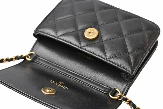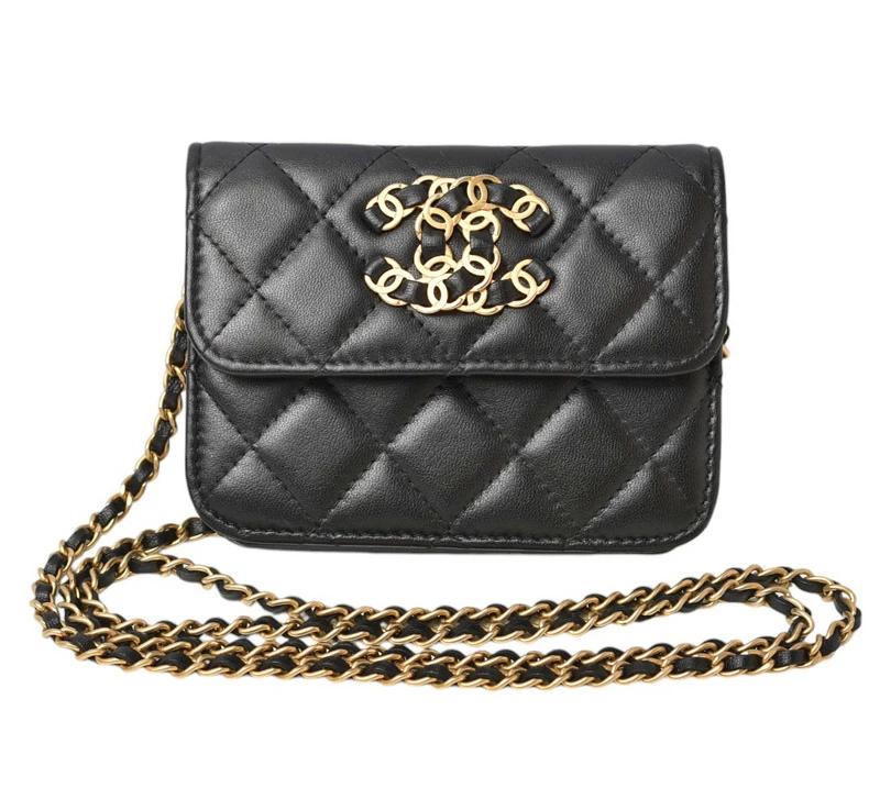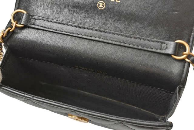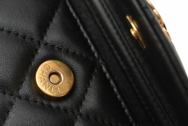 CHANEL ミニチェーンバッグ ラムスキン ブラック ゴールド金具