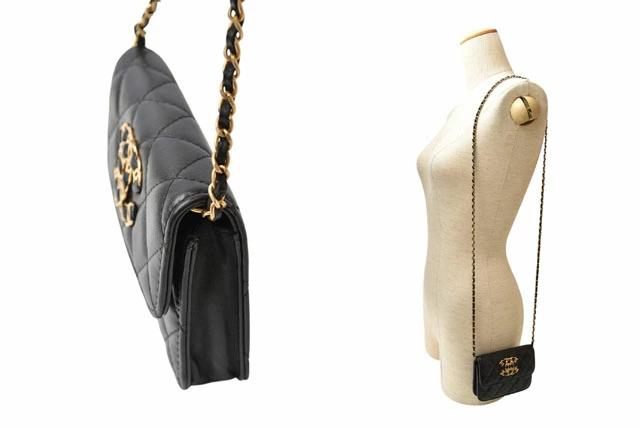 シャネルより、斜め掛けができるチェーンのついたミニマムバッグ/ポーチです。大変人気があり、入手困難。キルティングステッチ×CCマークの人気シリーズです。CCマークの中にもCCロゴがある、希少アイテム。多機能なマルチウォレットにもなります。使いまわしがきき、とっても重宝します!