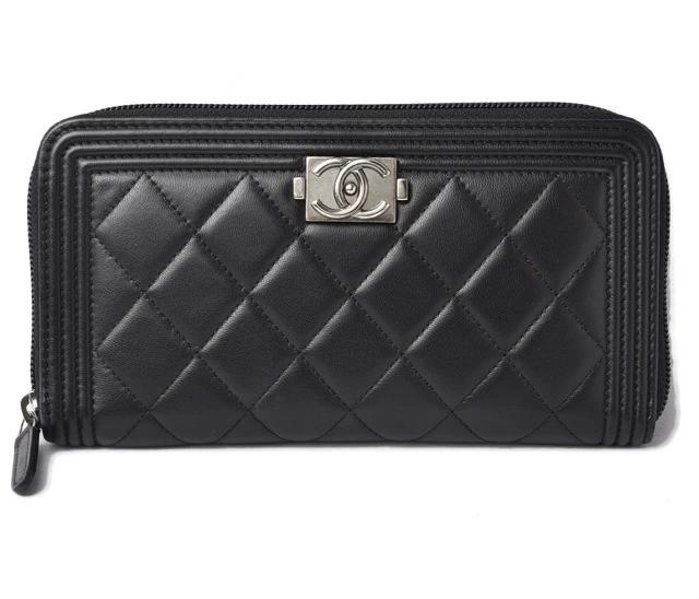 シャネルより、ボーイシャネルのファスナー式長財布です。人気が高く、直営店でも完売が続いております。ラムスキン素材にマトラッセステッチが高級感を漂わせます。ポケットも充実しており、財布の中身が多くなりがちな方も、すっきり整頓できます。