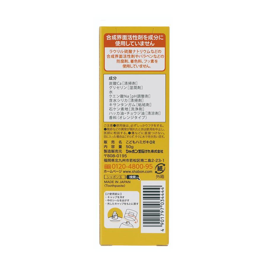 ●みかん味のやさしい甘さで後味さっぱり(オレンジから抽出された天然香味料を使用。) 容量 : 50g 成分 : 炭酸Ca[清掃剤]、グリセリン[湿潤剤]、水、クエン酸Na[pH調整剤]、含水シリカ[清掃剤]、キサンタンガム[粘結剤]、石ケン素地[洗浄剤]、ハッカ油・チョウジ油[清涼剤]、香料(オレンジタイプ)[香味剤] 商品コード : 2895
