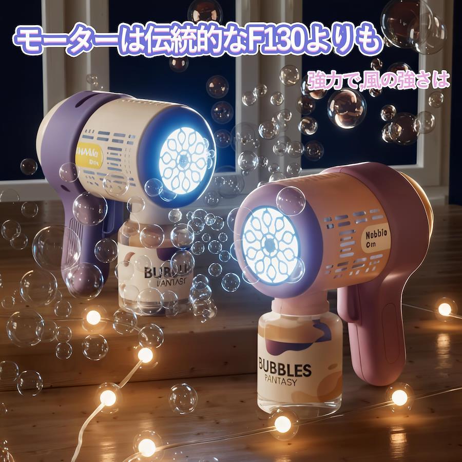 【受け取り次第、すぐに使え!】子供おもちゃとして最適なバブルガンは、シャボン液がセットで付属。商品を受け取ったら、ボタンを押し続け、シャボン玉が出るまでお待ち下さい。厳格な品質管理で、ご安心ください。【新デザイン!10個特大泡穴・ABS材質採用】このシャボン玉 電動バブルガンは、10個の大きな穴から1分間に 6000 個豊かなシャボン玉を放出する。安全な ABS 材質で、子ども おもちゃとして安心。公園や外遊びで、夢のようなシャボン玉の世界をお楽しみください。【改良モーター搭載、泡の飛距離40cm】伝統的なF130モーターとは異なり、強力なパワーを持つ改良されたモーターを採用します。シャボン玉の吹き出し距離が40cmに達し、外遊び おもちゃのシャボン玉 電動バブルガンとしてシャボン玉がより遠くまで届きます。【LEDライトと大容量バッテリー搭載!360°液漏れ防止 】電動 シャボン玉機がLEDを搭載し、シャボン玉をさらに輝かせます!360°液漏れ防止、大容量バッテリーを内蔵し、長時間使用をサポートします。【様々なシーンに適しています】.プレゼントに最適: クリスマスプレゼント、誕生日、女の子 プレゼント、男の子 プレゼント、子供プレゼント、結婚式、外遊びグッズ、こどものおもちゃ、パーティー、特別な日のプレゼントとして喜ばれる電動 シャボン玉機です。