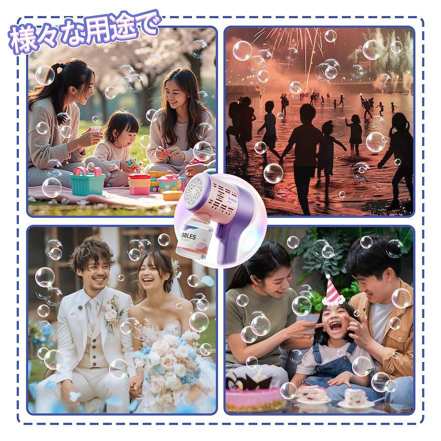 【受け取り次第、すぐに使え!】子供おもちゃとして最適なバブルガンは、シャボン液がセットで付属。商品を受け取ったら、ボタンを押し続け、シャボン玉が出るまでお待ち下さい。厳格な品質管理で、ご安心ください。【新デザイン!10個特大泡穴・ABS材質採用】このシャボン玉 電動バブルガンは、10個の大きな穴から1分間に 6000 個豊かなシャボン玉を放出する。安全な ABS 材質で、子ども おもちゃとして安心。公園や外遊びで、夢のようなシャボン玉の世界をお楽しみください。【改良モーター搭載、泡の飛距離40cm】伝統的なF130モーターとは異なり、強力なパワーを持つ改良されたモーターを採用します。シャボン玉の吹き出し距離が40cmに達し、外遊び おもちゃのシャボン玉 電動バブルガンとしてシャボン玉がより遠くまで届きます。【LEDライトと大容量バッテリー搭載!360°液漏れ防止 】電動 シャボン玉機がLEDを搭載し、シャボン玉をさらに輝かせます!360°液漏れ防止、大容量バッテリーを内蔵し、長時間使用をサポートします。【様々なシーンに適しています】.プレゼントに最適: クリスマスプレゼント、誕生日、女の子 プレゼント、男の子 プレゼント、子供プレゼント、結婚式、外遊びグッズ、こどものおもちゃ、パーティー、特別な日のプレゼントとして喜ばれる電動 シャボン玉機です。【免責事項】メーカーによる商品リニューアルに伴いパッケージ(内容量も含む)変更が行われた場合、新パッケージでお届け致します事ご了承願います。