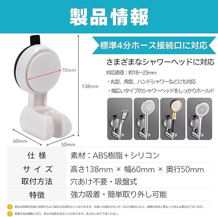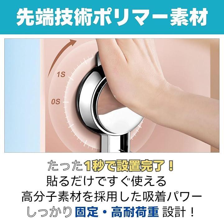 「穴あけ不要・吸盤式シャワーフックで賃貸でも安心」真空吸盤タイプのシャワーフックで、ドリルや工具は一切不要。