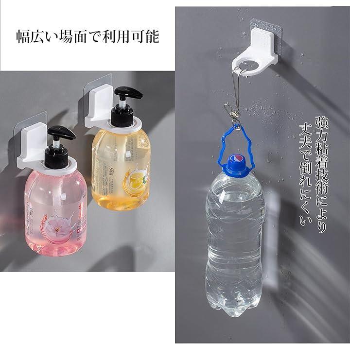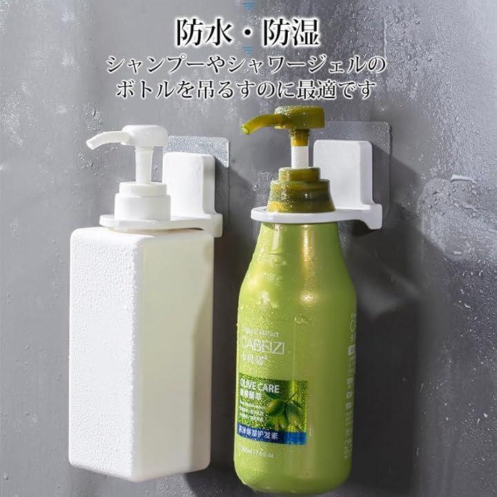 市販のシャンプーボトル、シャワージェルボトル、ハンドソープボトル、食器用洗剤ボトルなど、ほとんどのボトルに対応した壁掛け収納が可能です。