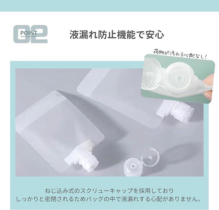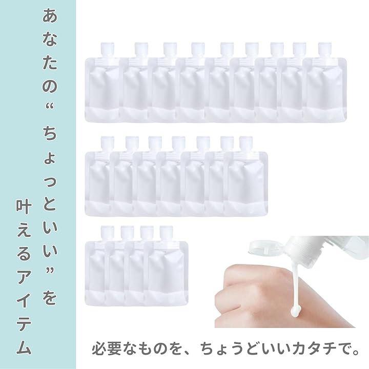 「商品詳細」セット内容:トラベルパウチx20個セット 材質:PET素材 / プラスチック 容量:30ml 旅行や外出に最適なこの旅行用シャンプーボトルで、荷物を軽くし、使いやすさとエコを両立させましょう。