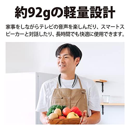 ・周囲の音を遮ることなく、テレビやスマートフォンの音声を耳元で楽しめる(テレビの音声もワイヤレスで楽しめる、Bluetooth送信機を同梱) ・長時間の装着でもストレスフリー、約92gの軽量設計 ・音声アシスタント機能「 Alexa」搭載。 ・お手持ちのスマートフォンやパソコンとBluetooth接続すればハンズフリー通話が可能、リモート会議やオンライン飲み会に最適。 ・音声の遅延が少ない「Qualcomm aptX Low Latency」に対応 ・生活防水仕様で、キッチンでの水回り、アウトドアでも使える