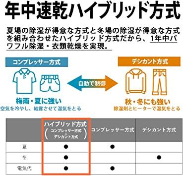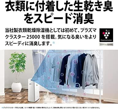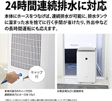 ハイブリッド方式だから1年中パワフルに除湿、部屋干しでも安定した乾き心地。ジメジメした梅雨も寒い冬場も、シャープのハイブリッド方式なら1年中スピーディーに衣類を乾燥できます。コンプレッサー方式とデシカント方式をバランスよく組み合わせ、1年を通じて高い除湿能力を発揮します。シャープのプラズマクラスター25000なら、衣類もお部屋も清潔・快適。プラズマクラスターだけの清潔乾燥で不快な生乾き臭をすっきり消臭。普段なかなか洗えないスーツやコートの臭いも、手軽にケアできます。部屋干し特有の生乾き臭をスピード消臭プラズマクラスター25000搭載。部屋干し臭の再発を抑える、臭い戻り対策モード。洗いにくい服を効果的にケア、衣類消臭運転。3種類(スイング/スポット/ワイド)の左右スイング、 4種類(上向き/前方/下向き/広角)の上下スイングで除湿された風を衣類に届けます。上下左右スイングを組み合わせて広範囲に送風ができるので、幅広い干し方に対応します。設置しやすいコンパクトサイズ。使いやすさにこだわった充実機能。本体にホースをつなげば、連続排水が可能に。排水タンクに溜まった水を捨てに行く手間が省けたり、外出中などの長時間運転にも応えます。