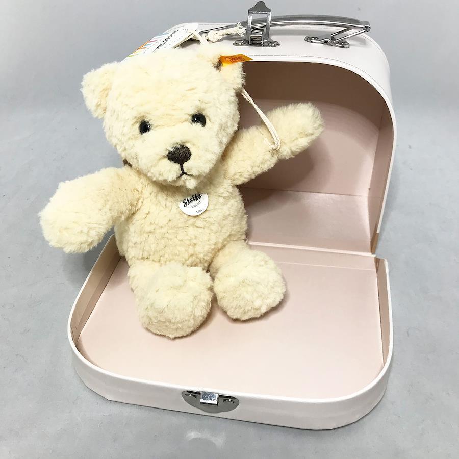 3営業日以内に発送≪新品未開封品≫シュタイフのキッズ向けプロダクツです。 ミラはシュタイフのベアファミリーの一員です。 家族は他にパパとママ、兄のベンがいます。 21cmサイズの小さなミラがピンク色のスーツケースに入って登場しました。 どこでも一緒におでかけできます。 スーツケースのガラはベンとミラがハグしている可愛いデザインです。 ジョイントなしのミラのボディはフリースでできているのでモコモコです。 とてもやわらかいクリーム色のぬいぐるみでできています。 茶色の鼻と黒い安全な目がついています。 30℃のぬるま湯で洗うことができ、お子様にとって衛生的なぬいぐるみです。 タグは黄色タグ、お子様向けの安全なぬいぐるみに付けられるHandmade by Steiff タグです。左耳には金メッキのボタンがついています。 21cm 限定なし 箱、鑑定書は元々付属しません *画像はサンプル画像となります。 *Handmade by Steiff (ハンドメイドバイシュタイフ)のタグ製品のプロダクツは現在、チュジニアないしカンボジアで作られています。