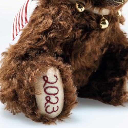 1997年の第1作から今年で26作品をむかえる日本限定のリトルサンタ。2023年のリトルサンタのコンセプトは「Bell(ベル)」。クリスマスベルにはイエスキリストの誕生を人々に知らせる「喜びの音を鳴らすベル」という意味があります。昨年のリトルサンタ「Noel ノエル」の語源はラテン語で「誕生」。今年は「誕生」の喜びを知らせる「ベル」へとバトンタッチします!昨年のノエルはあどけない表情の誕生したばかりのベアとして印象的でしたが、ベルはダークブラウンの少し長めのカーリーヘアでマズルも刈り込まれており、少し大人っぽくクラシックな雰囲気が漂います。アクセントには名前の由来となるベルがチョーカーに施され、バックサイドにはフランス製のキャンディケーン色のリボンが華やぎを添えてくれます。キャンディケーンには「導き」という意味があり、ベルには魔除けの効果があると言われており、アミュレット的存在のリトルサンタです。