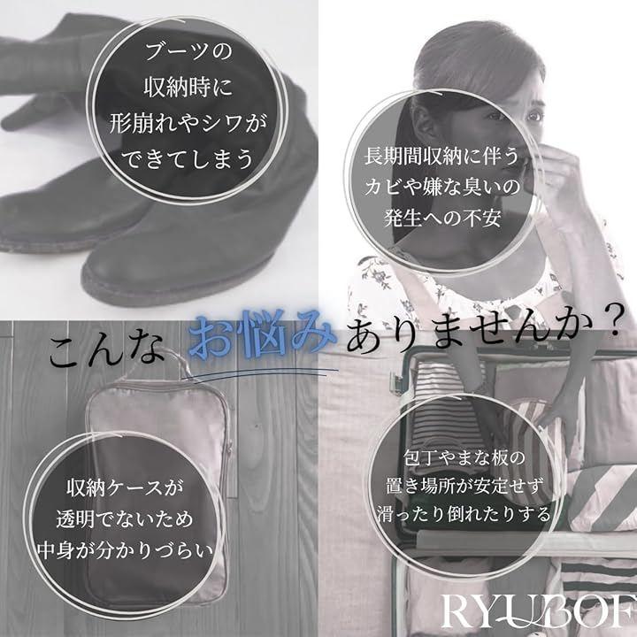 「立体設計で形をキープ」靴の形を崩さず収納する立体タイプだから、ブーツの型崩れやシワを防ぎ、美しいフォルムのまま長期間保管可能です。