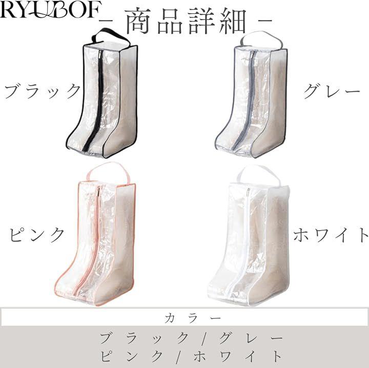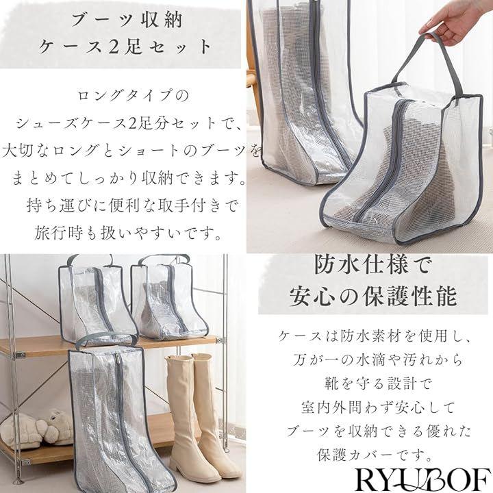 「防水仕様で安心の保護性能」ケースは防水素材を使用し、万が一の水滴や汚れから靴を守る設計で、室内外問わず安心してブーツを収納できる優れた保護カバーです。