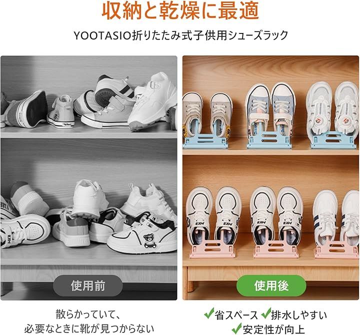 靴干し・収納の両用:このラックは、お子様の靴を干すのにも収納するのにも使えて、とても便利です。
