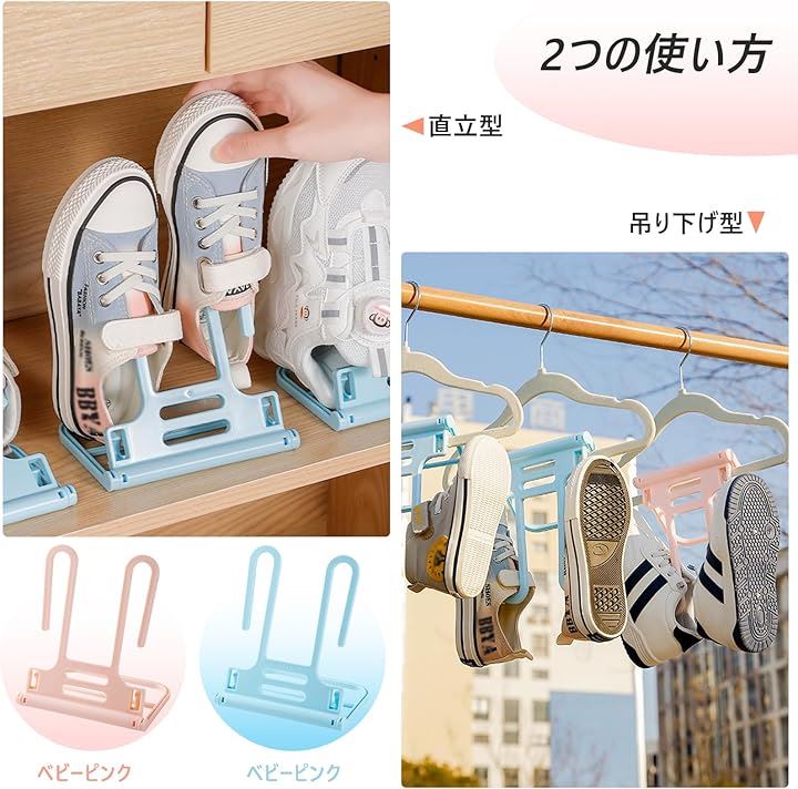 YOOTASIO シューズハンガー子供 ベビーハンガー 靴ハンガー 洗濯ハンガー 吊り干し靴干しハンガー 靴スタンド 靴収納 子供用 空間節約 靴干し・収納の両用シューズラック(2個xベビーブルー)