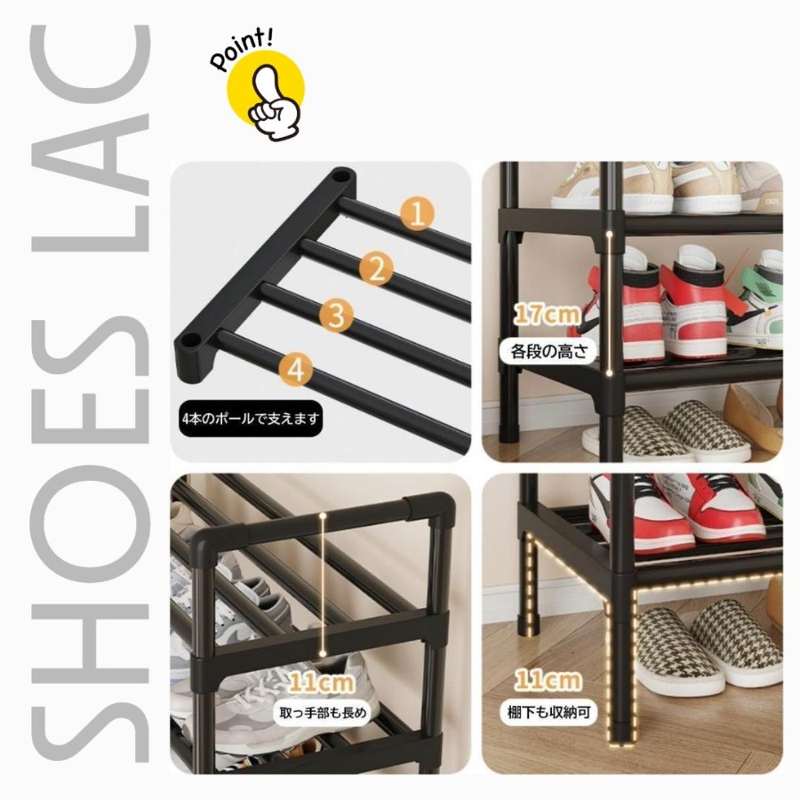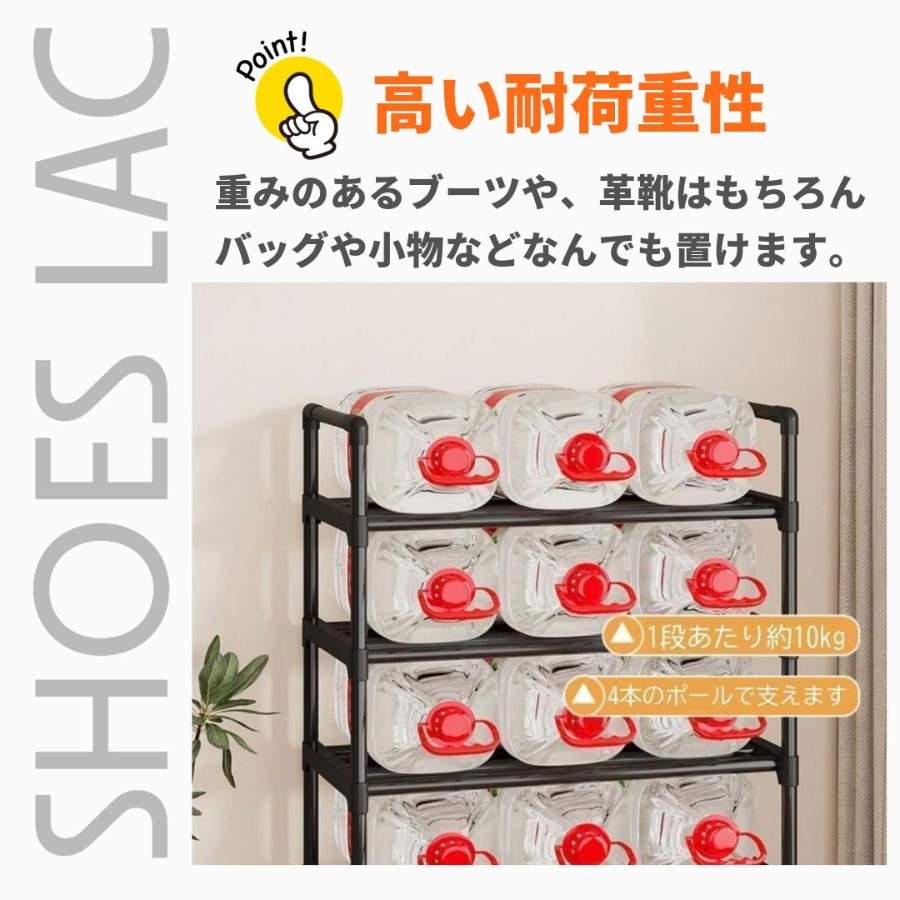 5段構造で、革靴・スニーカー・ブーツまでたっぷり収納できます。